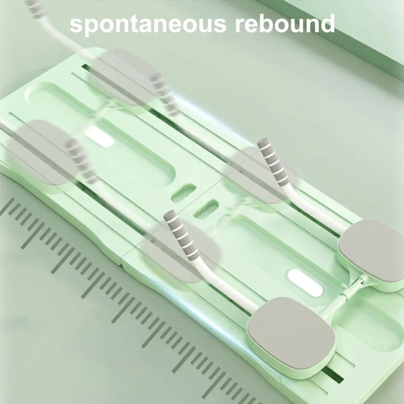Description: The NNETM 4-in-1 Pilates Board is a versatile fitness tool designed to enhance your home workout experience. It combines an ab roller, push-up bars, plank support, and resistance bands into one compact unit, offering a complete solution for strengthening your core, arms, legs, and glutes. The ergonomic design with foam elbow pads ensures comfort during long sessions, while the automatic rebound system allows for a fluid, dynamic workout.