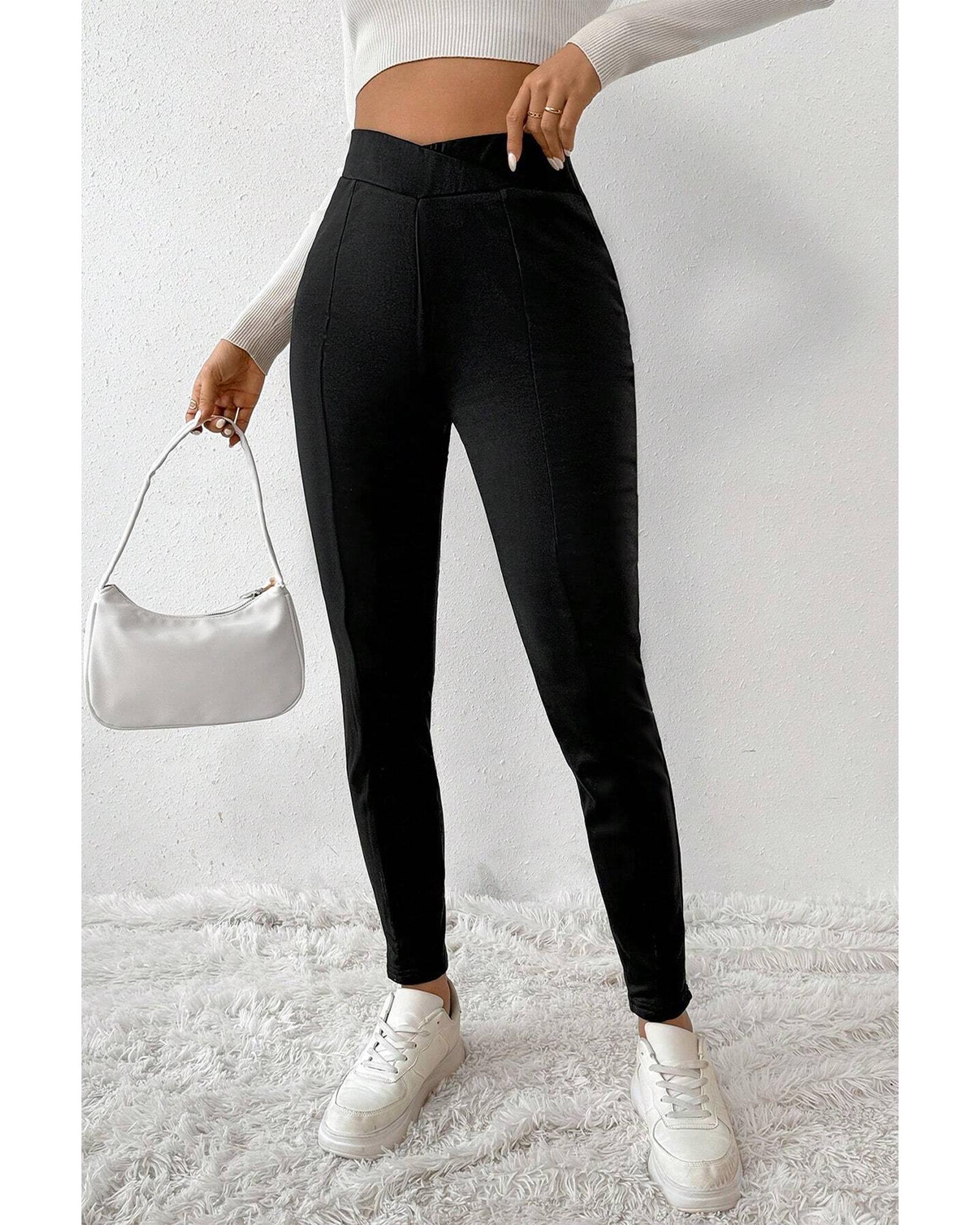 Black Crossed Waist Seamed Leg Thermal Leggings - S