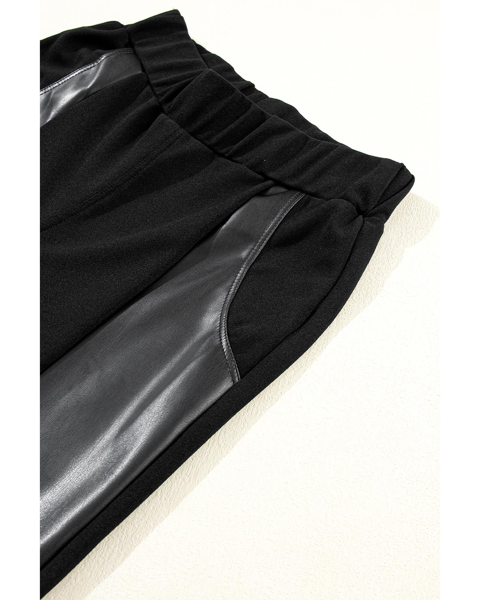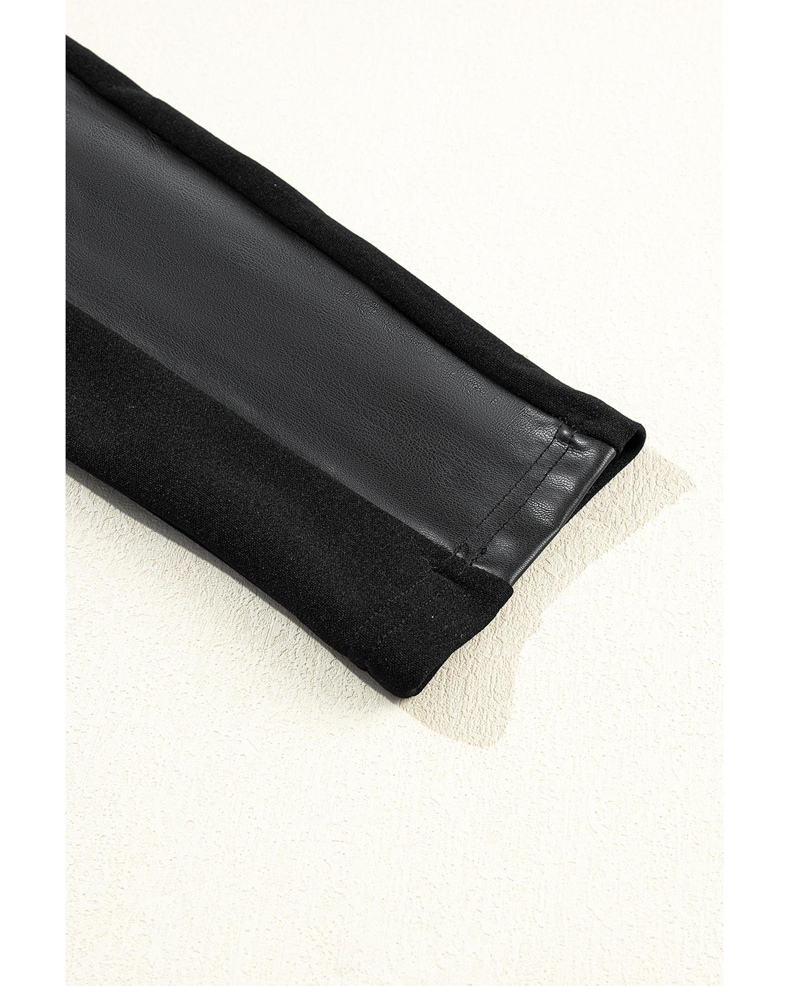 Black Leather Panel Patchwork High Waist Leggings - XL