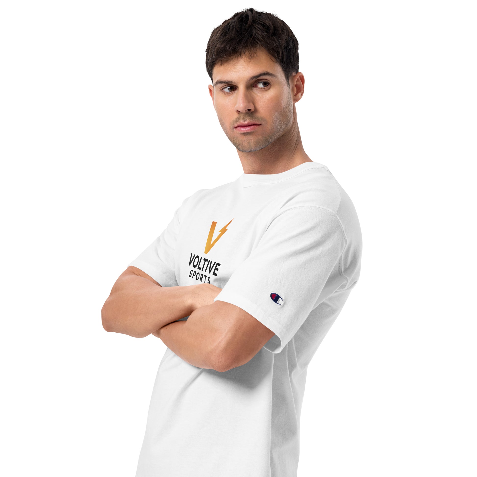 Enrich your wardrobe with this elegant design on a Champion t-shirt that has the brand logo embroidered on the left sleeve. The 100% cotton fabric and deep armholes are sure to make it your favorite tee.
