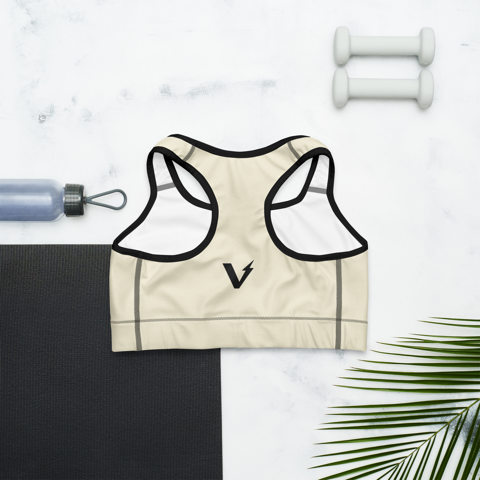 This gorgeous sports bra is made from moisture-wicking material that stays dry during low and medium intensity workouts. The bra has support material in the shoulder straps, double layer front, and a wide elastic band to ensure constant support.