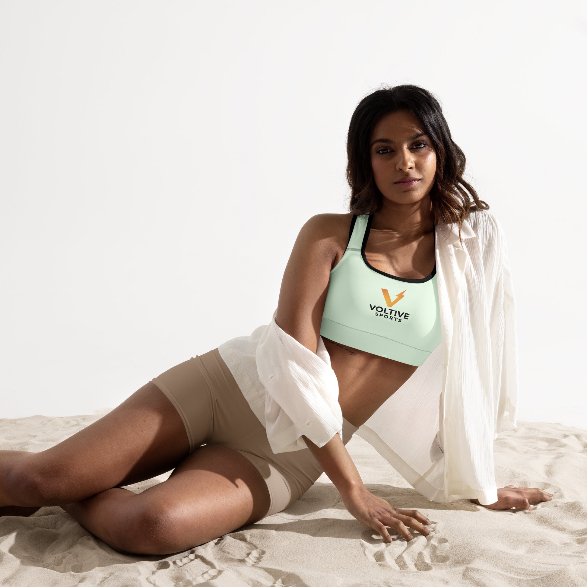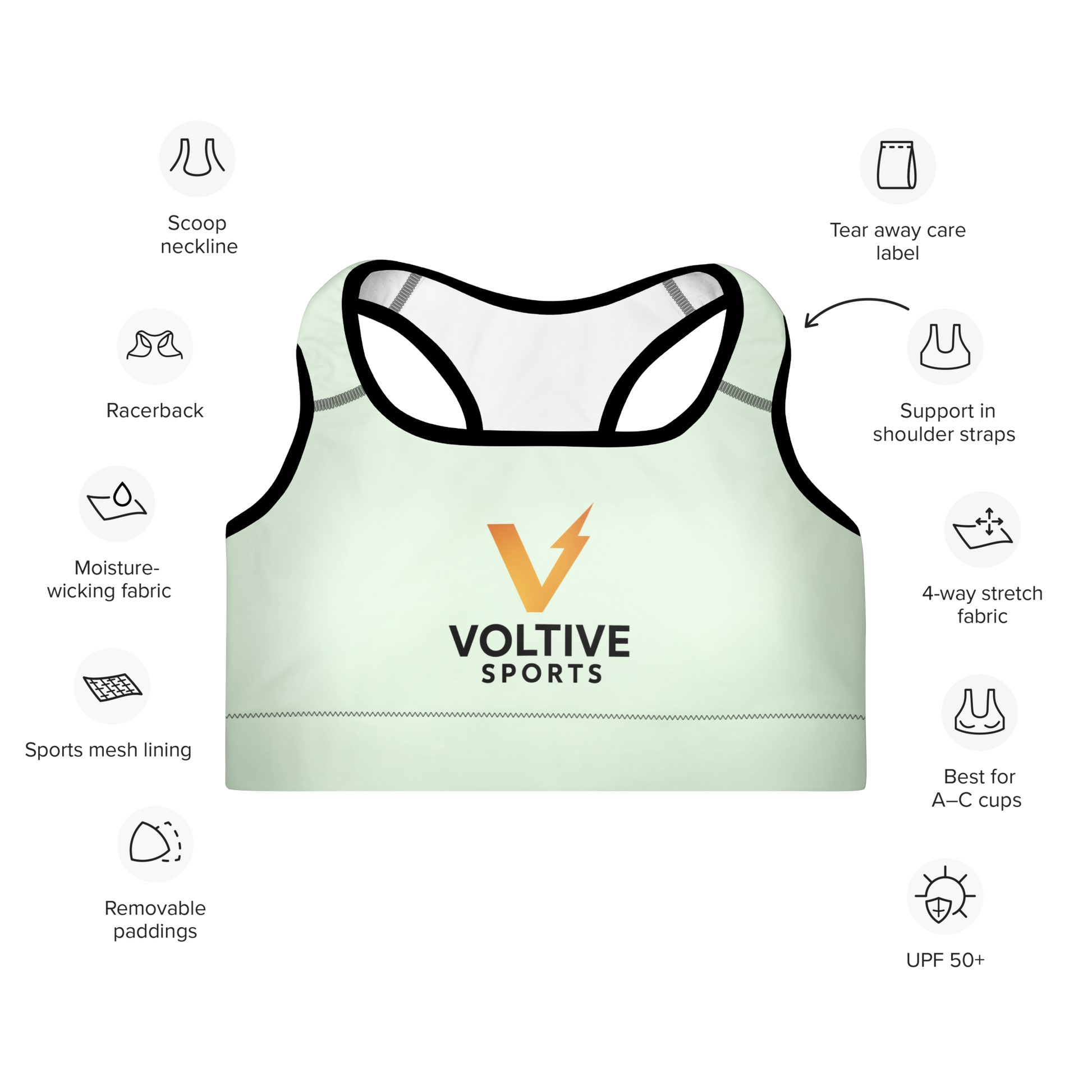 Power through every workout with the Voltive Sports Padded Performance Bra. Designed for both style and support, this sports bra features a four-way stretch moisture-wicking fabric, removable padding, and a secure racerback cut. The wide elastic underband ensures a snug fit, while the sleek Voltive branding adds a bold, athletic edge. Whether you’re hitting the gym, going for a run, or flowing through yoga, this bra provides the comfort and performance you need.